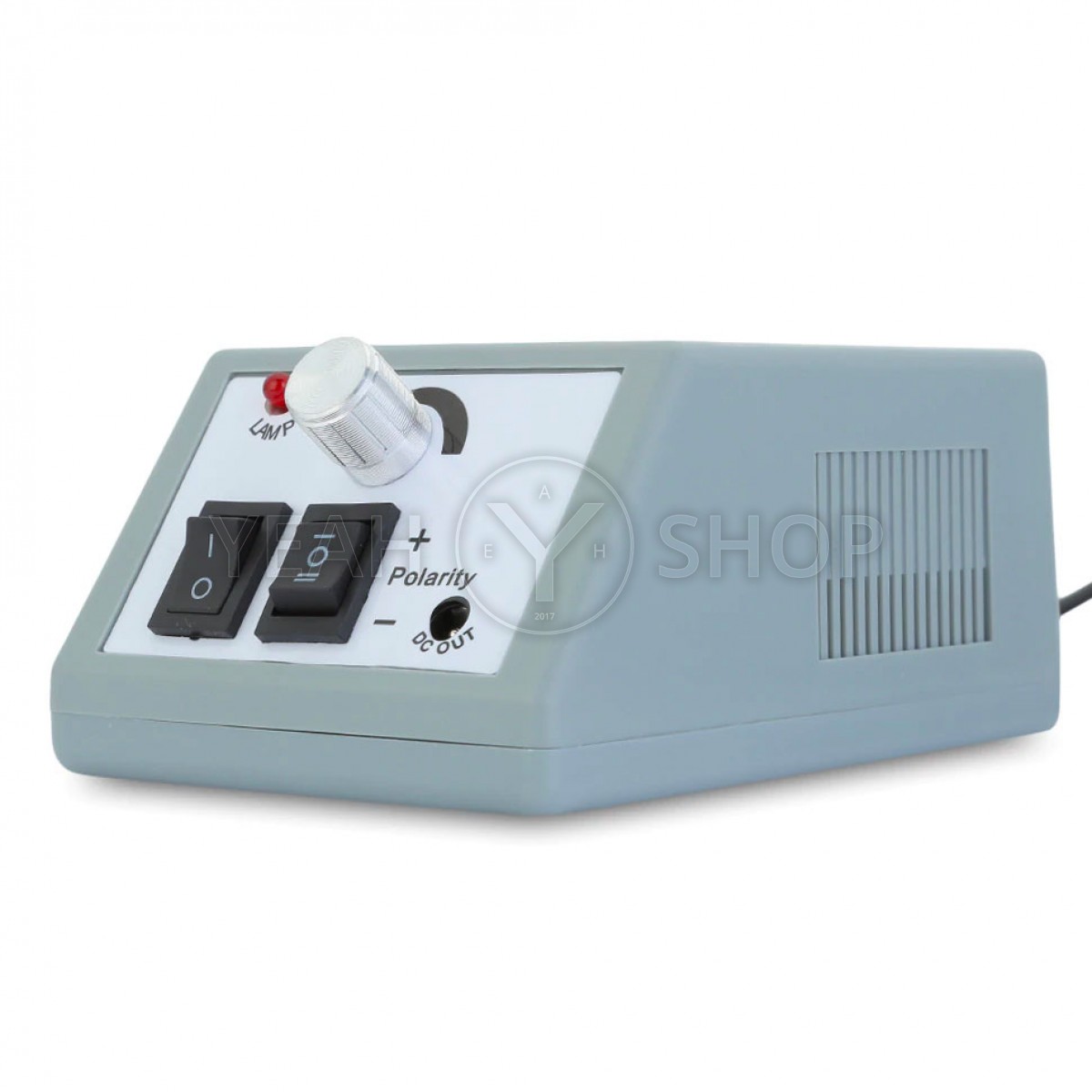 У комплект входять: блок живлення, мікромотор, зручна силіконова підставка, набір фрез. Силіконова підставка для ручки зручна у використанні при зміні фрез, вона фіксує мікромотор і запобігає його ковзання.