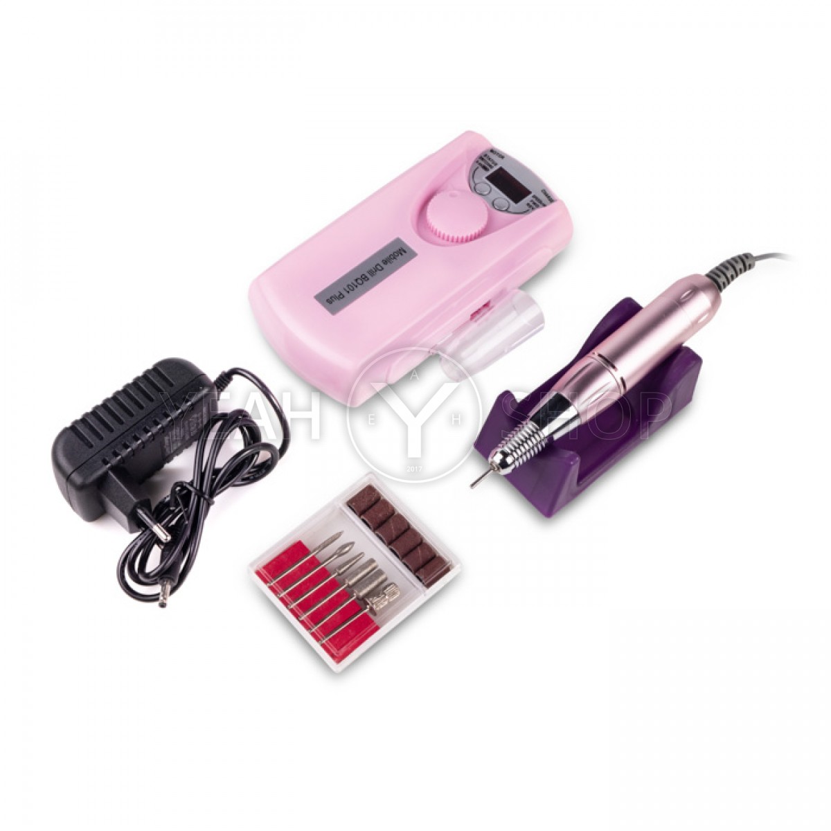 Потужна ручка, повністю металева, стабільно тримає обороти. Насадки з алмазним напиленням, необхідні для обробки краю нігтя, шліфування, тонкого шліфування, видалення кутикули, видалення мозолів і грубої шкіри, чищення під нігтями, корекції штучних нігтів і фінішного шліфування.