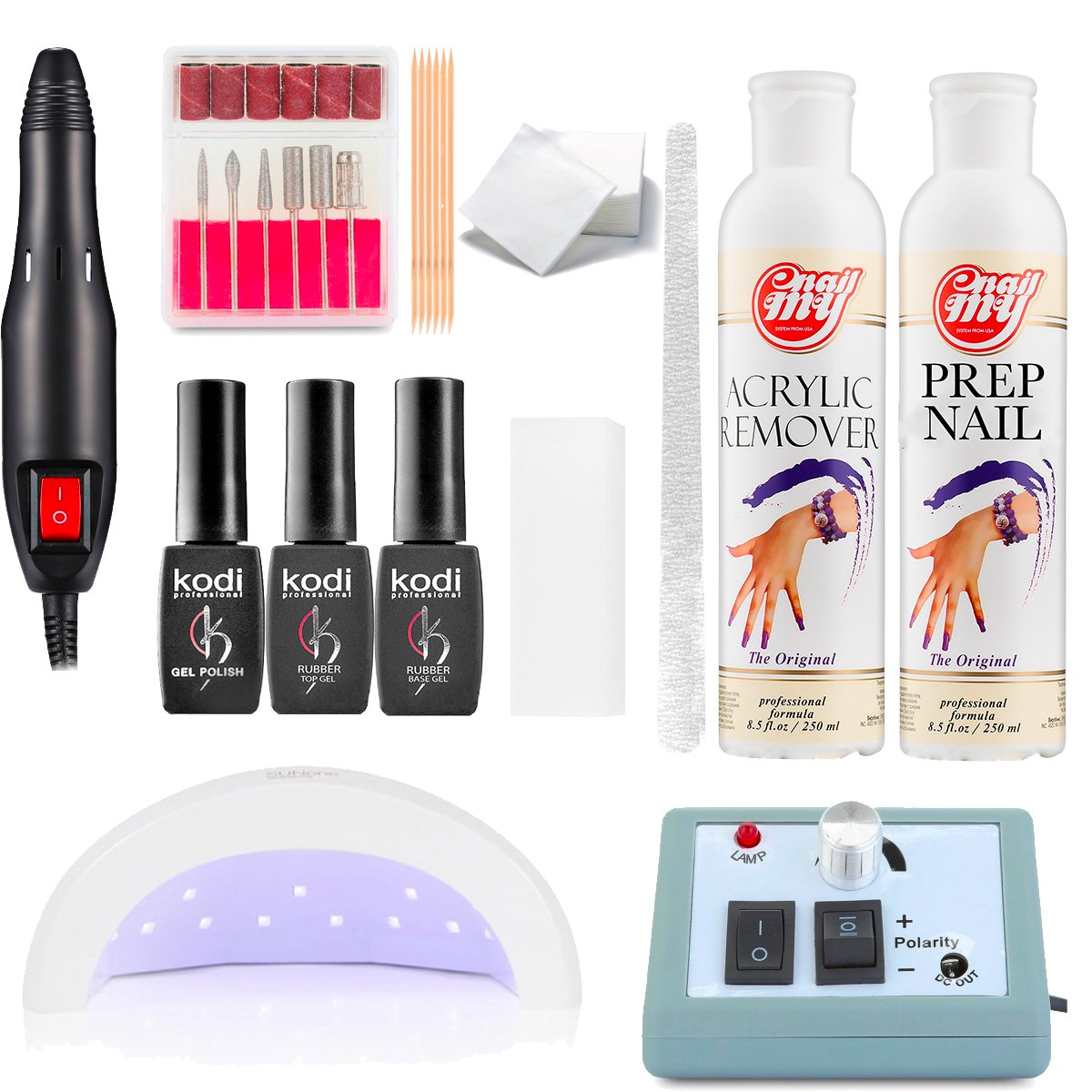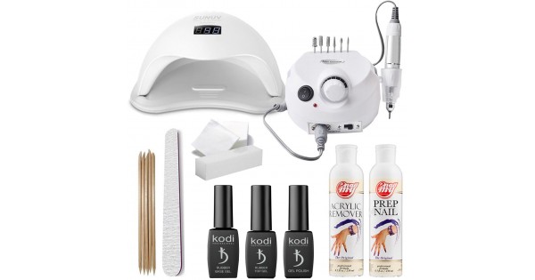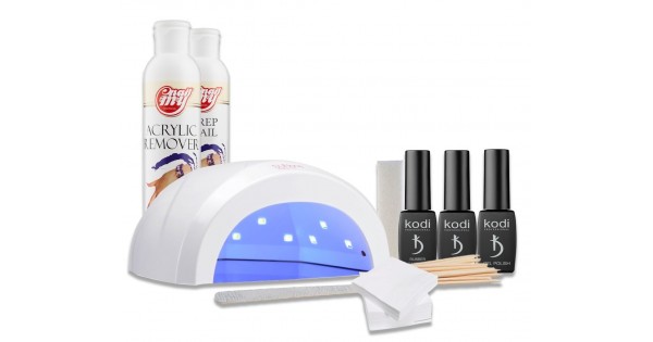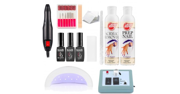 - Лампа для сушки гель-лаку. Раз з найдорожчих інструментів в комплекті, без якого неможливо стати. Умілий комплект в обов'язковому порядку підключає її в себе. Це має можливість бути УФ-лампа (ультрафіолетова лампа), led-лампа або ж гібридна. Більш економним варіантом вважається УФ-лампа, в якій покриття сушити досить тривалий час (кожен шар не менше 2 хвилин). У звичайний стартовий комплект заходить лампа потужністю 36 Ватт, власне що дозволяє просушити кожне покриття.