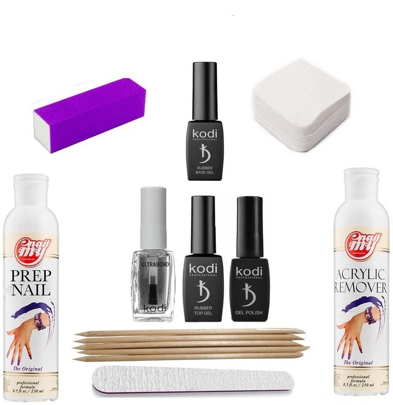 Крім такого, в стандартний комплект входять ці значущі матеріали та інструменти як пилка, баф для шліфування нігтів, безворсовие серветки, пушер, апельсинові палички, Ремувер (пом'якшувач) для кутикули, масло для кутикули. В основна маса наборів входять пластмасові затискачі, засіб для зняття гель-лаку і інші матеріали і інструменти.