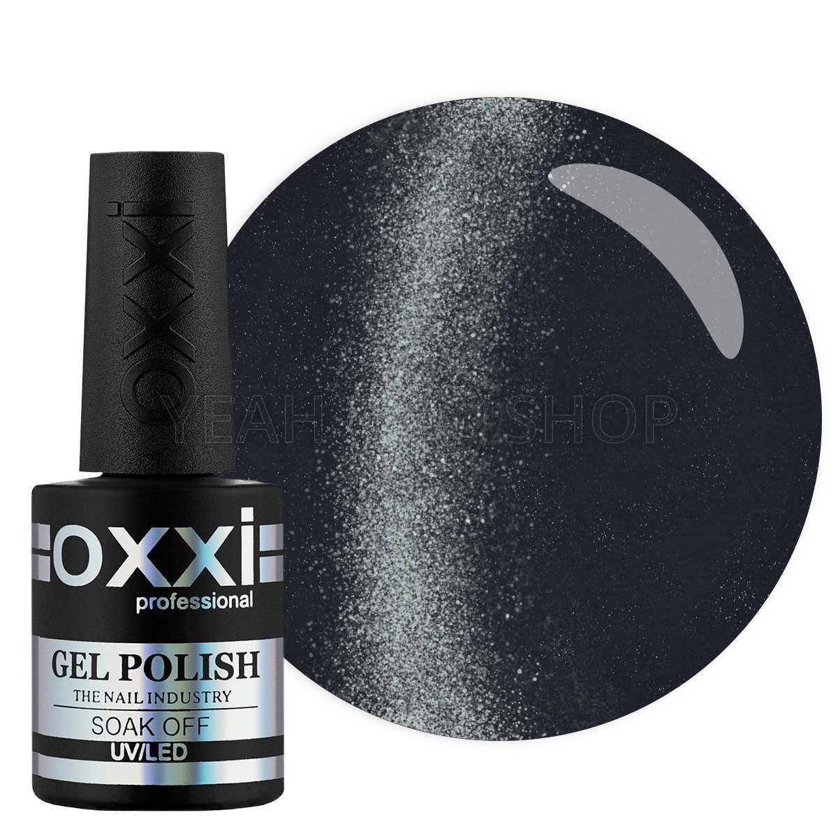 - Нанесите 2-3 слоя гель-лака OXXI кошачий глаз. Не забудьте запечатывать торец. Перед полимеризацией каждого слоя в УФ-лампе, поднесите магнит к гель-лаку на расстояние 3 мм и держите его в течении 10-15 секунд. Время полимеризации каждого слоя в УФ-лампе - 2 минуты в LED лампе 30 секунд.