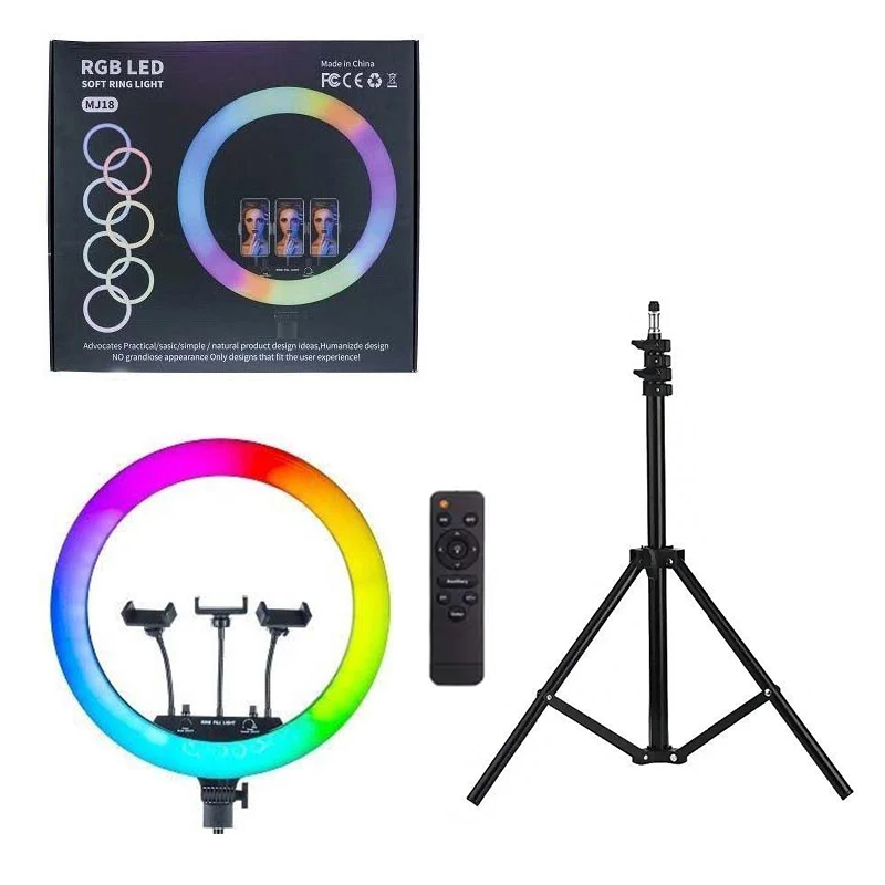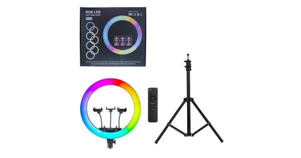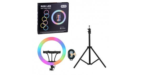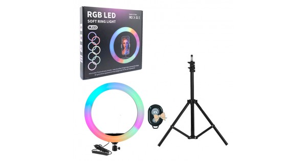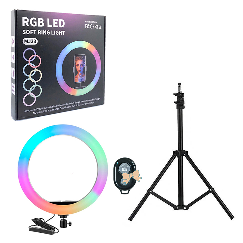 Професійна кільцева лампа RGB MJ-33 33см (одне кріплення, управління на дроті, штатив, пульт) YS-31599